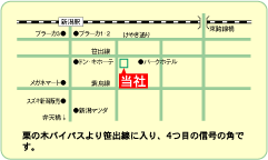 本社は新潟駅より徒歩5分、車なら栗の木バイパスから笹出線に入って4つ目の信号の左角です。